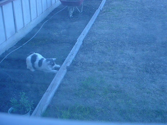 A larger picture of the cat and mouse. I figured that they played for about an hour. Played?